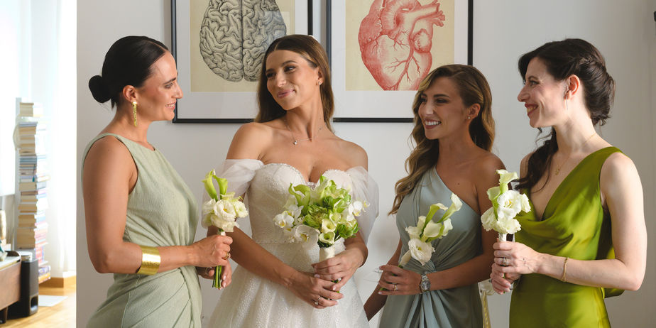 Il matrimonio in Grecia di Lupo Lanzara e Federica Cremisini. L'abito da sposa nude nasce con un pizzo trovato in Accademia