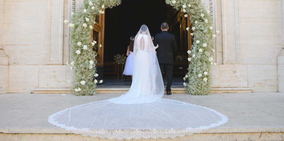 Il matrimonio in Grecia di Lupo Lanzara e Federica Cremisini. L'abito da sposa nude nasce con un pizzo trovato in Accademia